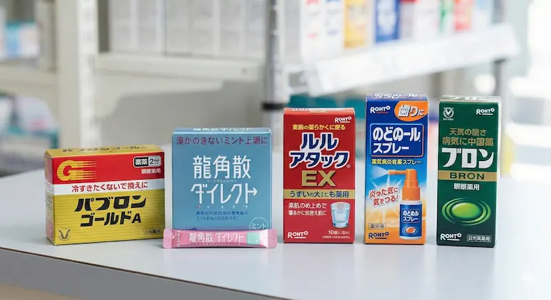 | 용각산 다이렉트 | 류카쿠산 | 물 없이 복용하는 가루 타입. 목 통증, 기침, 가래 완화 | 600엔 ~ 800엔 (16포) |