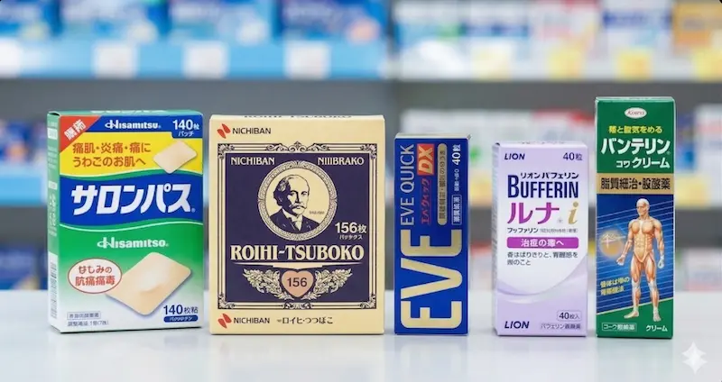 | 동전파스 (로이히츠보코) | 니치반 | 동전 모양의 국소 부위 온열 파스. 혈자리 자극 효과 | 600엔 ~ 800엔 (156매) |